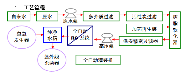 2)   系統主要采用優質RO膜材料和進口離子交換樹脂制水,預處理可連續生產,自動清洗,系統回收率高。從根本上保證了整個生產線運行平穩,產水量足和系統壽命長,核心部件為進口優質材料。