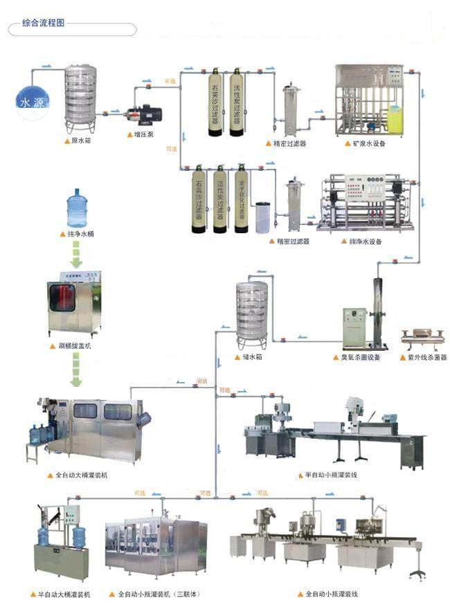 1、純凈水生產廠純凈水制備:可配全自動灌裝機組成全自動桶裝水